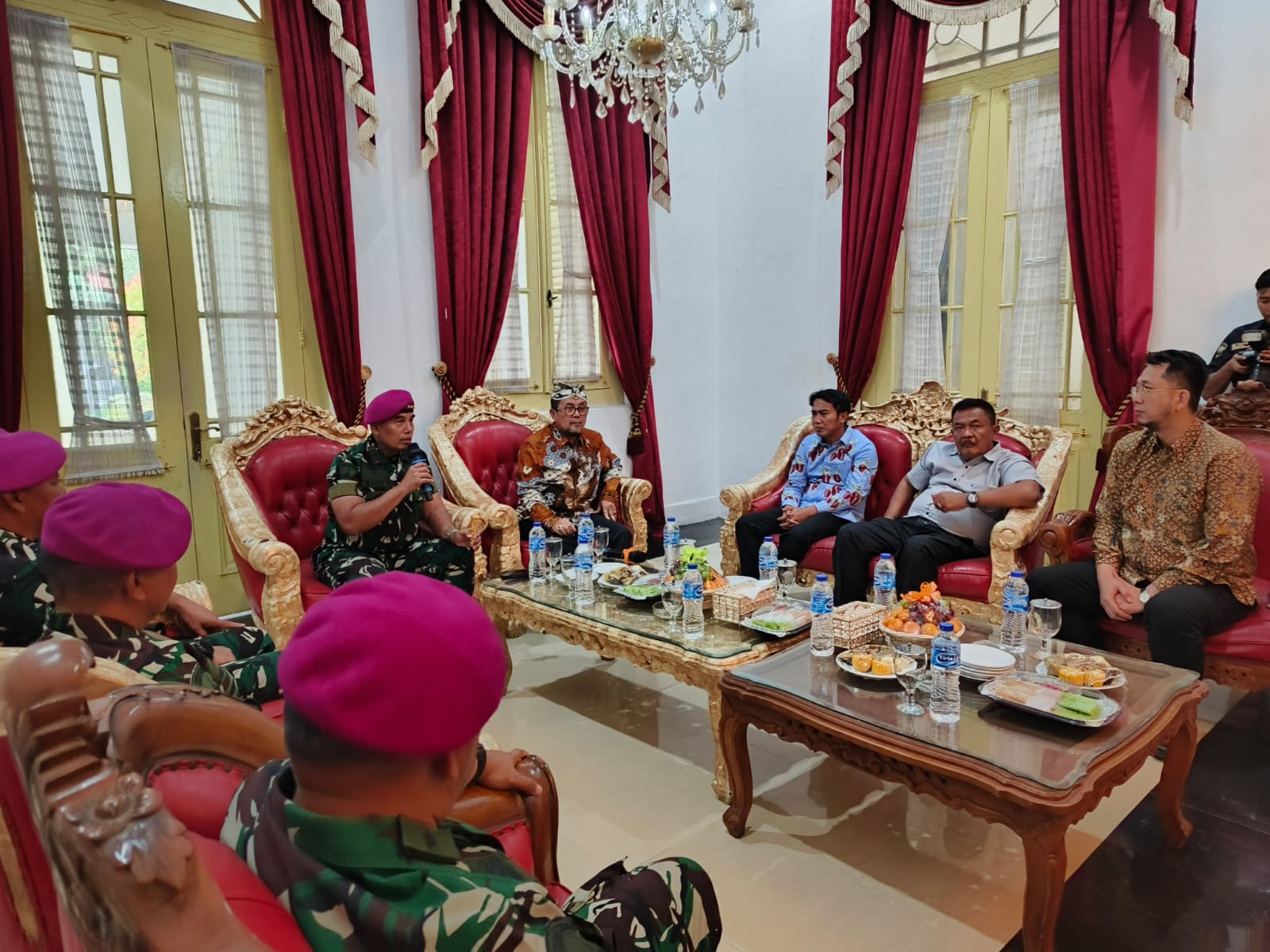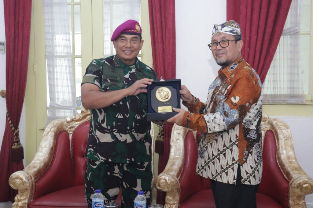 KABUPATEN CIREBON — Panglima Korps Marinir (Pangkormar) TNI AL Letnan Jenderal TNI (Mar) Endi Supardi melakukan kunjungan kehormatan ke Pendopo Bupati Cirebon, Senin (22/12/2025).