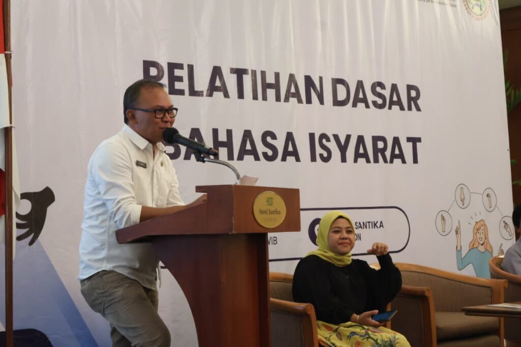 KABUPATEN CIREBON – Pemerintah Kabupaten (Pemkab) Cirebon bekerja sama dengan Forum Komunikasi Difabel Cirebon (FKDC) menyelenggarakan pelatihan dasar bahasa isyarat di Hotel Santika Cirebon, Kamis (18/9/2025).