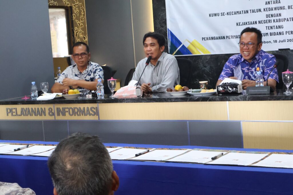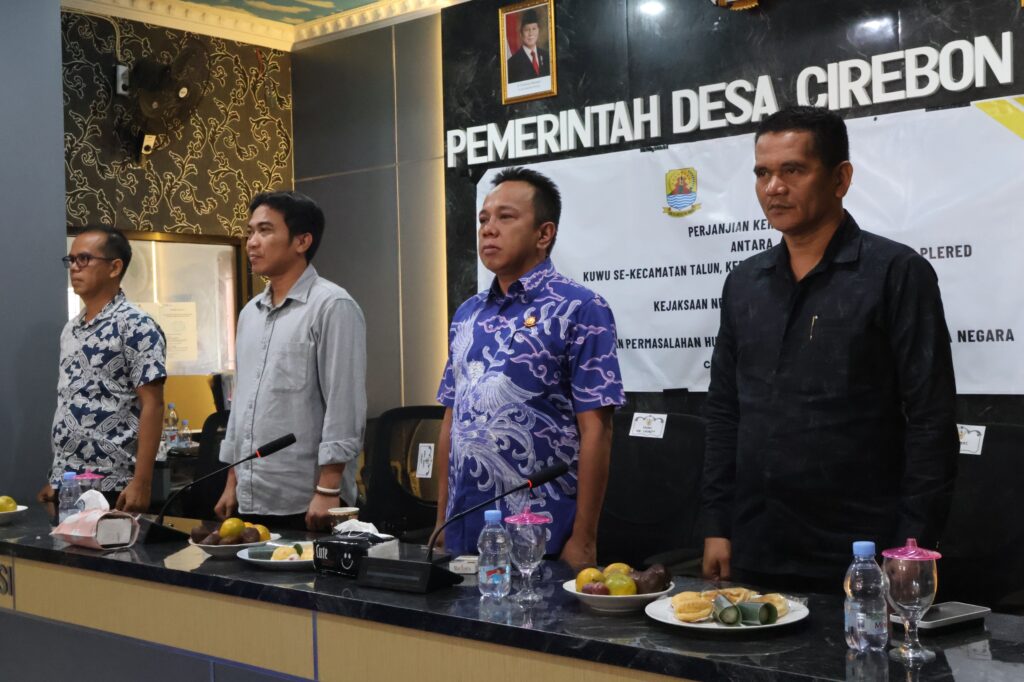 KABUPATEN CIREBON — Wakil Bupati Cirebon, Agus Kurniawan Budiman, menghadiri perjanjian kerja sama (MoU) antara kepala desa (kuwu) dan Kejaksaan Negeri (Kejari) Kabupaten Cirebon di Balai Desa Cirebon Girang, Kecamatan Talun, Jumat (18/7/2025).